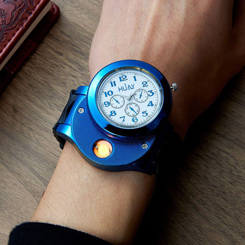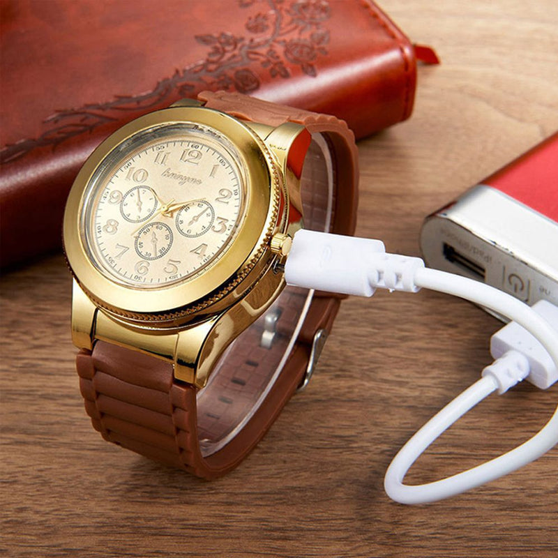 • USB WIEDERAUFLADBAR ------ Lange Lebensdauer. Dies ist eine außergewöhnliche Kombination aus Uhr und Feuerzeug. Sie können es als Uhr tragen, um die Zeit zu überprüfen, oder Sie können es verwenden, um sich bei Bedarf eine Zigarette anzuzünden.